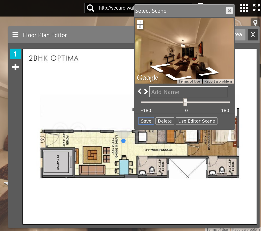 Floor Plans in WalkInto adds the ability to organize the tour navigation into 'Area' and 'Floor'. On each floor Points of Interests ('Point') can be created and connected with a panorama scene. Once these connections are made Viewer can easily navigate between 'Areas' or 'Floors' and click on any 'Points' to jump to a specific scene. While this feature is a natural fit for Real Estate Virtual tours, this can be creative used to help add an alternate navigation structure for large areas, for example amusement parks or Museums.
